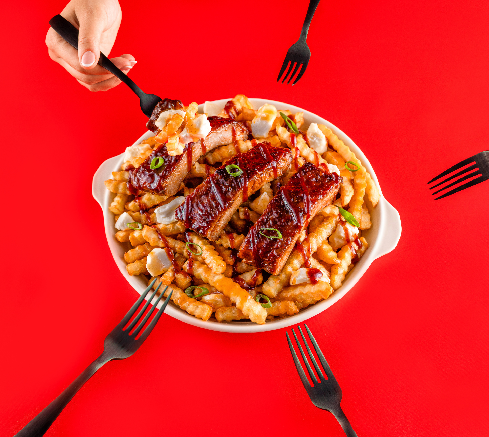 Idéation de campagne, création de contenu photo, vidéos publicitaires et stratégie de diffusion pour le lancement de la Poutine aux côtes levées