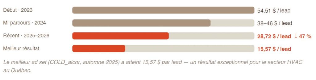 L’objectif n’était pas simplement de “faire de la publicité”. C’était de construire un écosystème d’acquisition Meta capable de générer des leads qualifiés dans un marché HVAC compétitif.