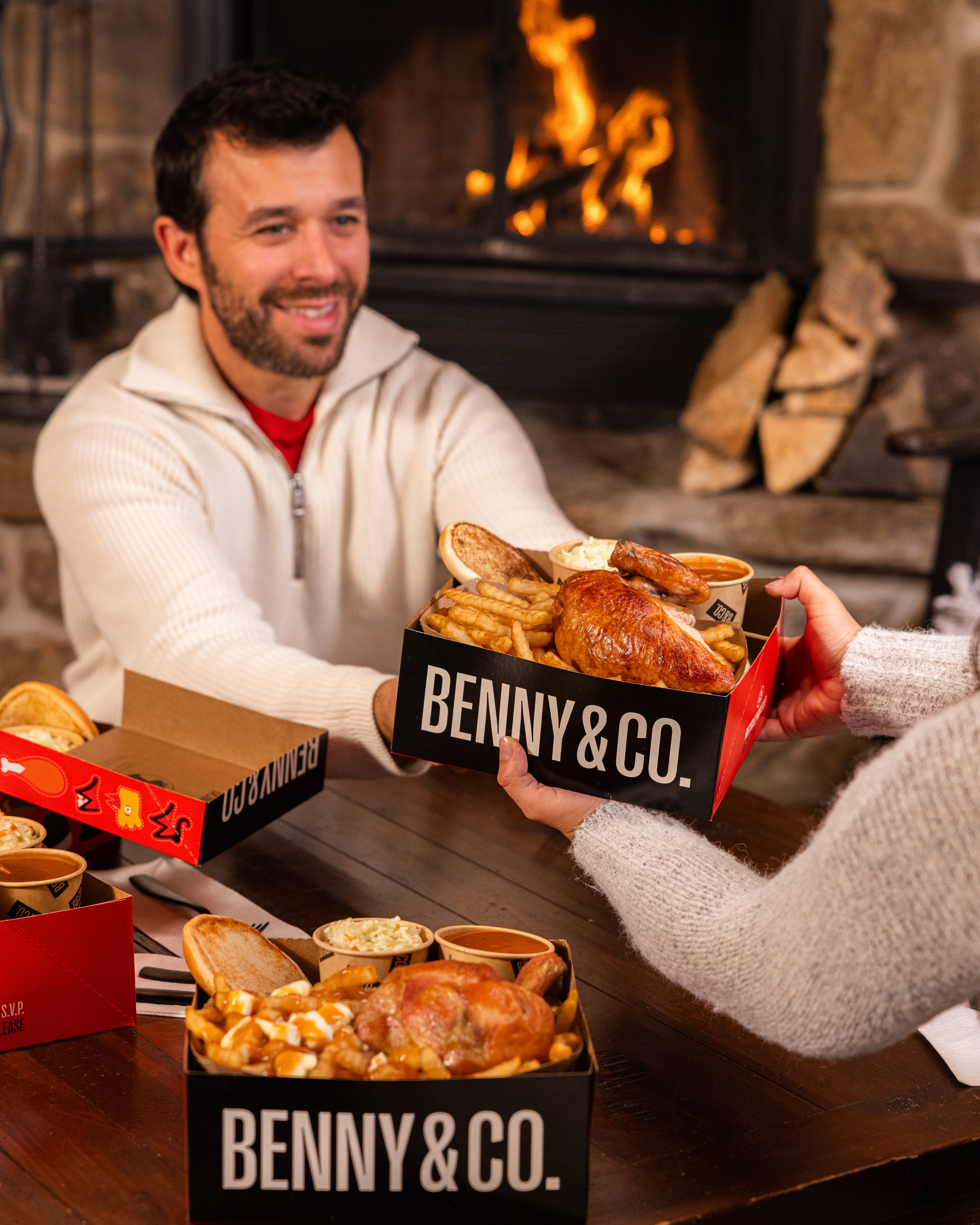Pour Benny&Co., nous avons imaginé et produit une campagne mettant en valeur la générosité de la marque avec son offre exclusive : à l’achat d’un repas cuisse ou poitrine, une soupe ou une version poutine est offerte. Afin de maximiser l’impact de cette promotion, nous avons conçu une série de 5 vidéos publicitaires adaptées aux réseaux sociaux et aux campagnes payantes. Une vidéo principale rassemble les quatre personas de la campagne et quatre vidéos individuelles illustrent différentes façons de commander chez Benny&Co. (en ligne, au comptoir, par téléphone ou en salle à manger).